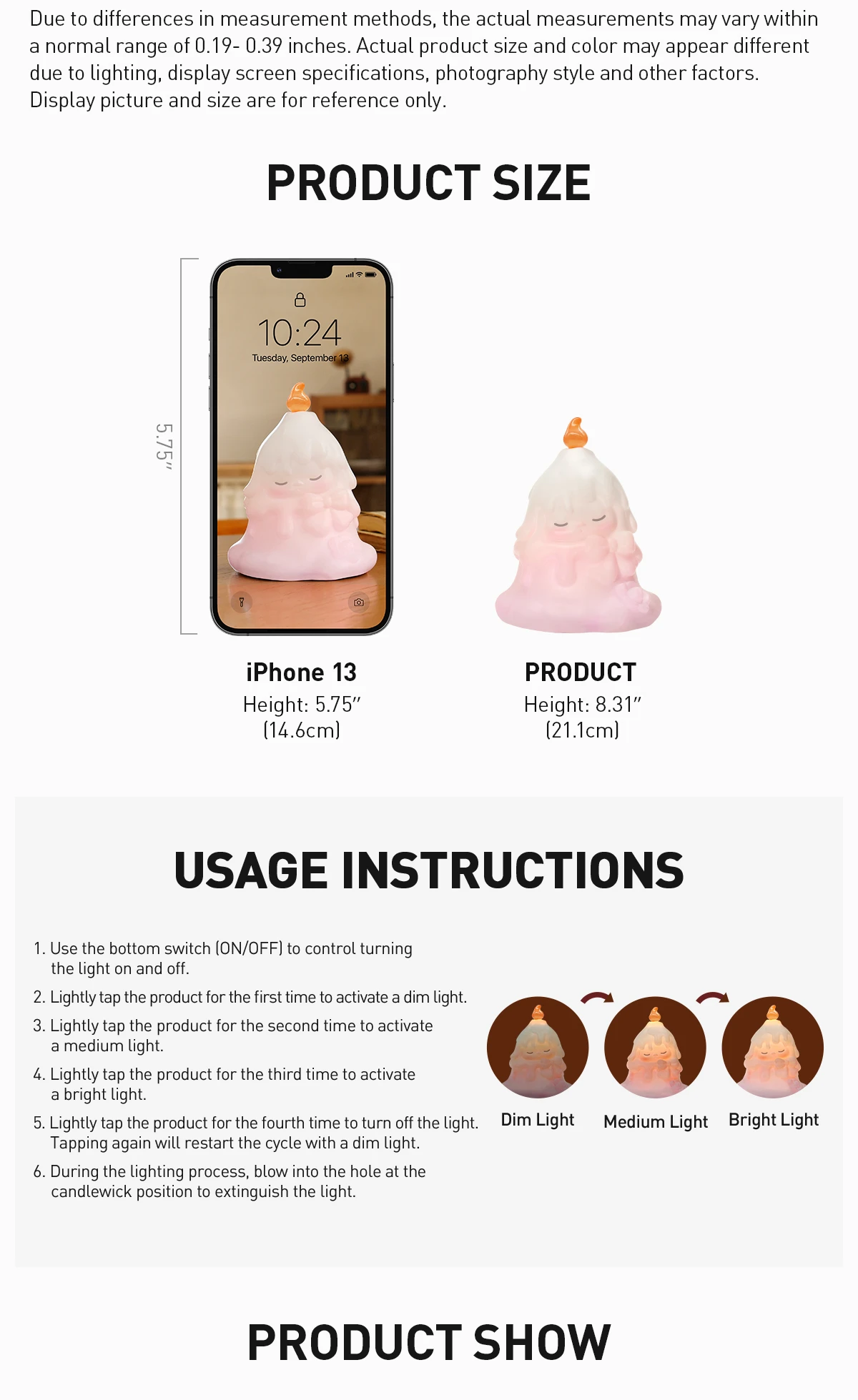 *Due to differences in measurement methods, the actual measurements may vary within a normal range of 0.19- 0.39 inches. Actual product size and color may appear different due to lighting, display screen specifications, photography style and other factors. Display picture and size are for reference only.